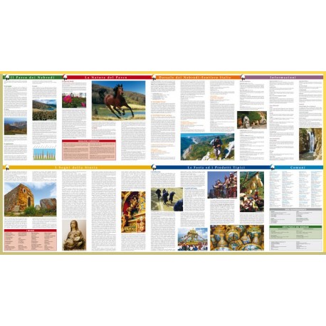 This detailed hiking map highlights a number of walking trails including the long-distance Sentiero Italia and the 70km Dorsale dei Nebrodi, as well as places of interest and facilities in and around the National Park including the visitor centre and museum.