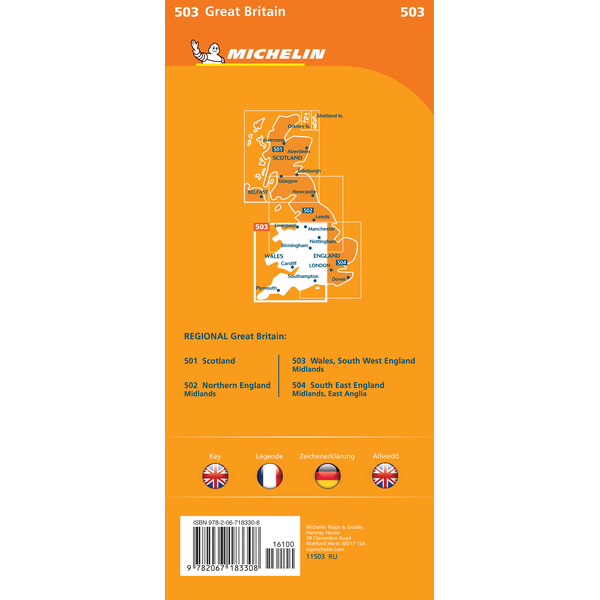 MICHELIN’s Wales, The Midlands & South West England Regional Map scale 1/400,000 will provide you with an extensive coverage of primary, secondary and scenic routes for this region. In addition to Michelin’s clear and accurate mapping, this regional map includes all the practical information for a trouble free journey, including major town plans as well as tourism information to make the most of your journey.